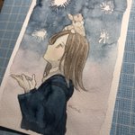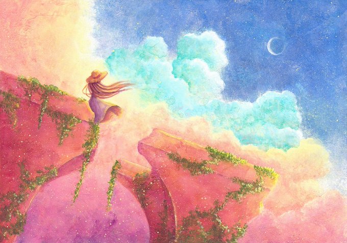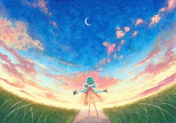 【夜明け-land-】 #おわりの星 出展作品・ミニ原画② instagram.com/p/ChzTMA7MEIA/… pixiv.net/artworks/10126… #アナログイラスト #アクリル画 #ミニ原画