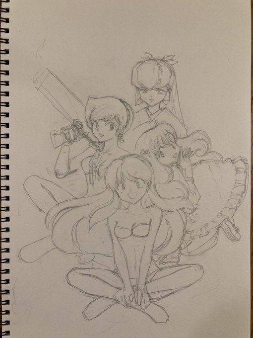 仲良し4人組。ランちゃんだけスケ番じゃないけど。#うる星やつら #うる星やつら44周年 #ラムちゃん #ランちゃん #弁天 #おユキ #絵描きさんと繋がりたい #絵柄が好みって人にフォローされたい #100日チャレンジ 10回目