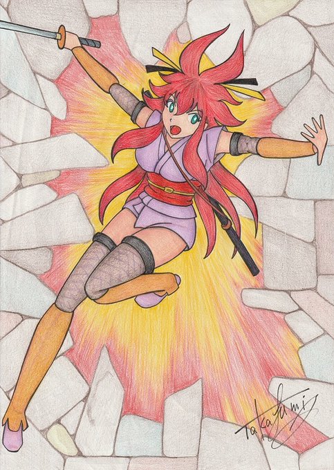 おリマちゃん 9月7日はきゅうななの日 #描かせていただきました #色鉛筆 #きゅうななの日 #おリマ #くノ一 #背景ホンキのイッパツ描き pixiv.net/artworks/92564…