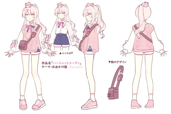 #プロセカ衣装デザイン #お出かけ服 女性用: 【カフェラッテ・トレンチスタイル】 トレンチコートをメインに、大人っぽくて可愛いコーデになるよう頑張りました🧥 所々に音楽関連のモチーフを入れているのがポイントです🎶 よろしくお願いします🙌