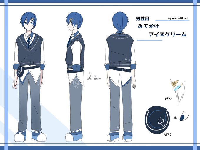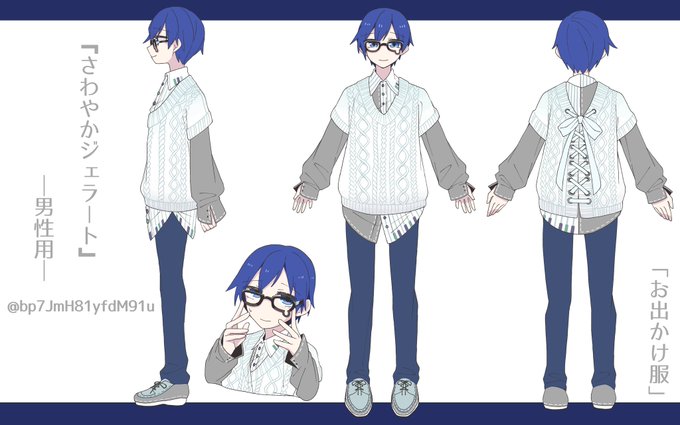 >こちらの絵投稿してから修正したい箇所を見つけたので少し修正しました。すみません。 男性用衣装「Stripe Pop」です よろしくお願いします! #プロセカ衣装デザイン #お出かけ服 twitter.com/karin8812/stat…