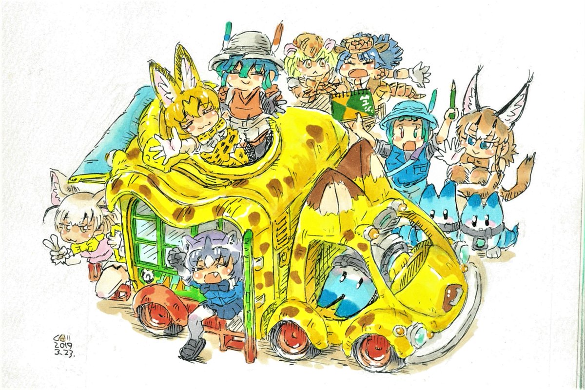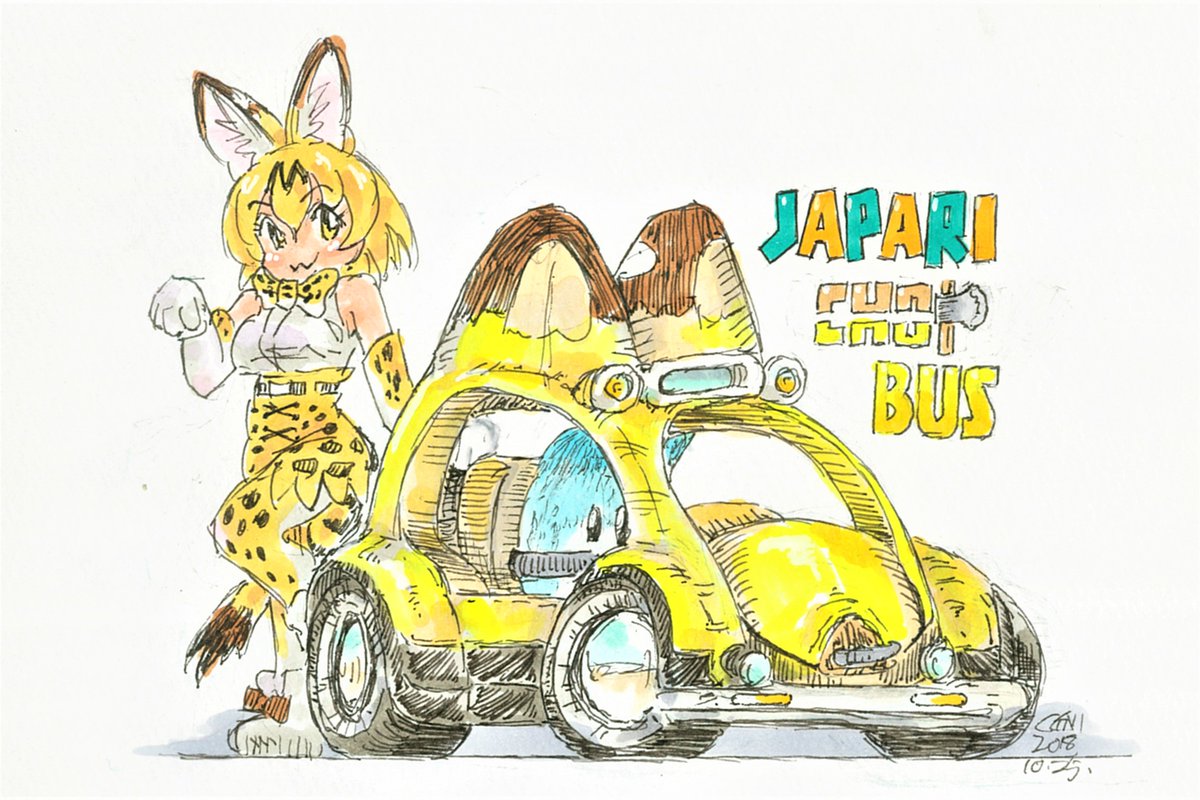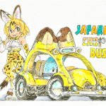 #お前らけもフレの最初の推し誰だよ これが最初のけもフレ絵 最初の推し? サーバル? かばんちゃん? それともボス? …いやぁ… 多分、ジ ャ パ リ バ ス だな 旅を共にし、共に戦い抜いた誇り高き野生のジャパリバスに一票 #イラスト #けものフレンズ
