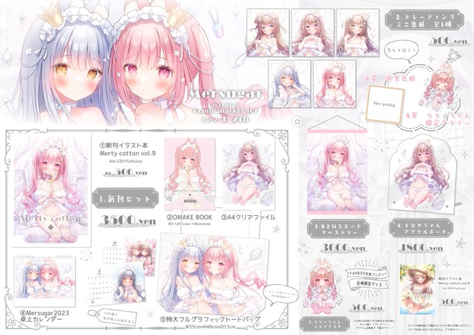 【#C101 #お品書き】 『Mersugar』 12/31(土) 東京ビッグサイト 東1【D-24b】 冬コミ当日のお品書きになります! 宜しくお願いいたします~( ᐡ. ̫ .ᐡ ) 通販情報も含めてFANBOXの全体公開記事にまとめています! 🗝️ mersugar.fanbox.cc/posts/4995477 WEBカタログ👑 webcatalog-free.circle.ms/Map#16808467/d…