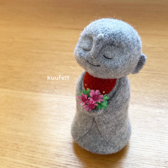 何となく癒されたくて作ったお地蔵さま。 このツイを見てくださった方にも癒しを与えてくれますように。 minne.com/items/32563165 #minne_new #羊毛フェルト #お地蔵さま