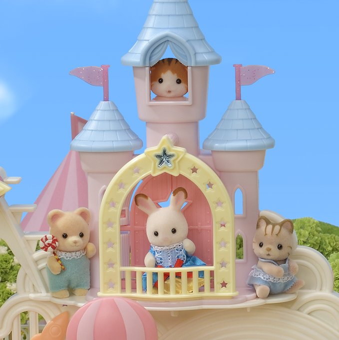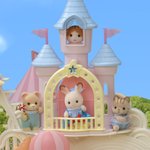「おひめさまになったみたい!」 ショコラウサギのクレムはドレスを着てお姫様気分🎀 「みんな~こっちだよ~!」 お城の上から手を振ってみんなにアピールです✨ #シルバニアファミリー #シルバニア #お姫様 #ゆうえんち #シルバニア赤ちゃん