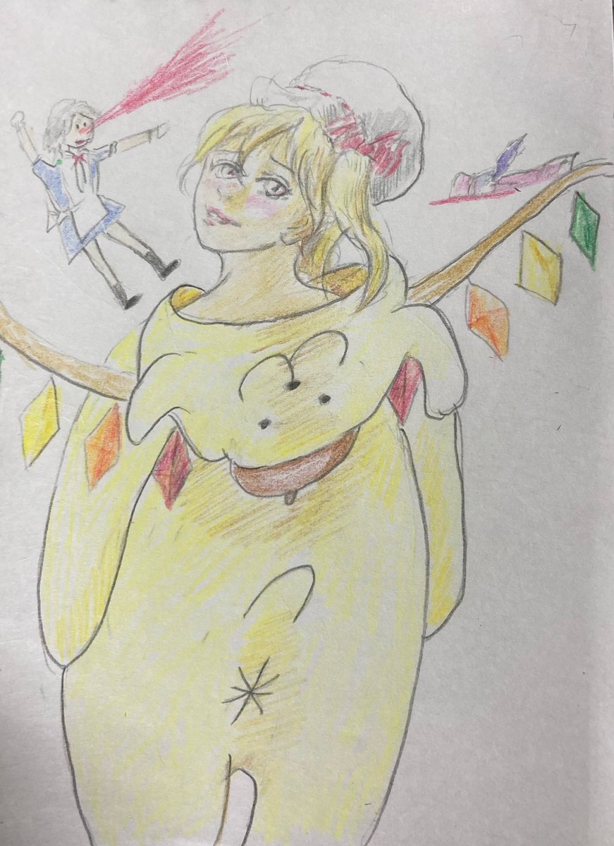 何か急に思いたったので #お尻の日 にも #いいお尻の日 にも再掲しようかなって考えちゃったのZE!新手の手抜きですか、それ? #深夜の真剣お絵描き60分一本勝負 #フランドールスカーレット #東方project #アナログ絵 #ポムポムプリン は公式コラボだから問題ないはず