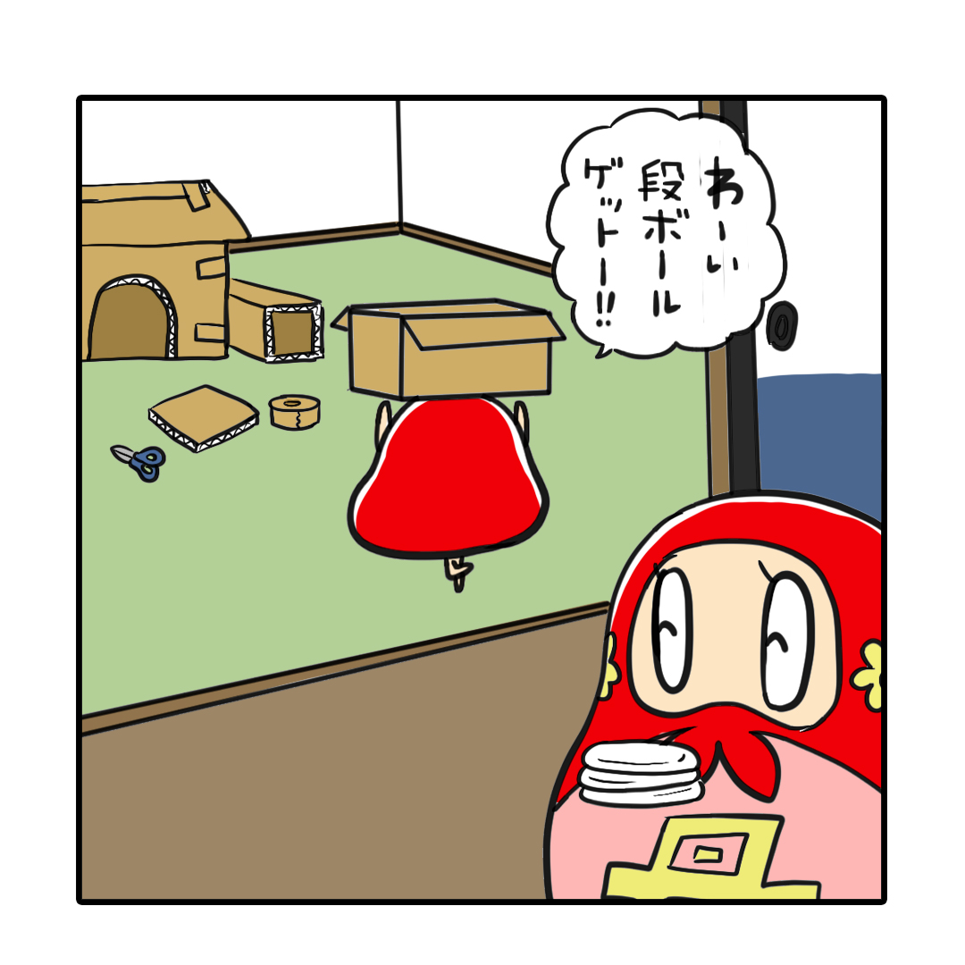 『ぼーちゃんとお届け物📦✂』 お家に届いたお届け物。 ぼーちゃんの欲しい物って…? #お届け物 #ダンボール #工作 #だるまのぼーちゃん #イラスト #ゆるいイラスト #ゆるかわイラスト #お絵かき #絵描きさんと繋がりたい #一日一絵 #4コマ漫画 #漫画 #漫画が読めるハッシュタグ