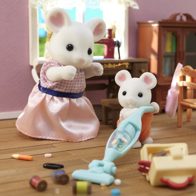「ぼくがおそうじする!」 マシュマロネズミのアルバートは #お掃除 の #お手伝い 中! 「つぎはこっち!」 「あぁ!アルバート待って!」 夢中で #掃除機 をかけていたら、さっきより散らかっているみたい💦 次はお片付けのお手伝いかな? #シルバニアファミリー #シルバニア #シルバニア赤ちゃん