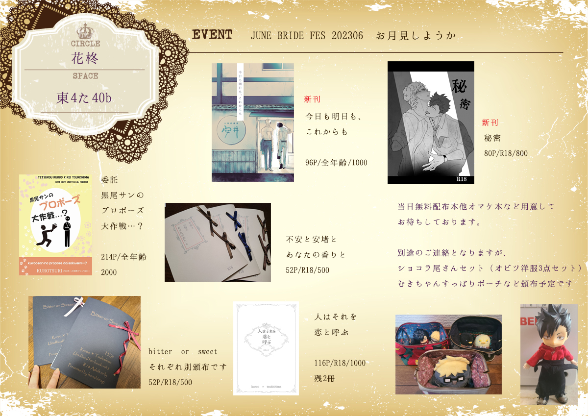布系のまとめたやつです(´- `*) 空っぽでした支部のとこにも新刊既刊無配のお知らせはりつけてますー。 布ものは素人の手遊びなんだなと思ってやっていただけますと幸いです #お月見しようか230625 【クロ月/おしながき】お月見しようか | やまね #pixiv pixiv.net/artworks/10921…
