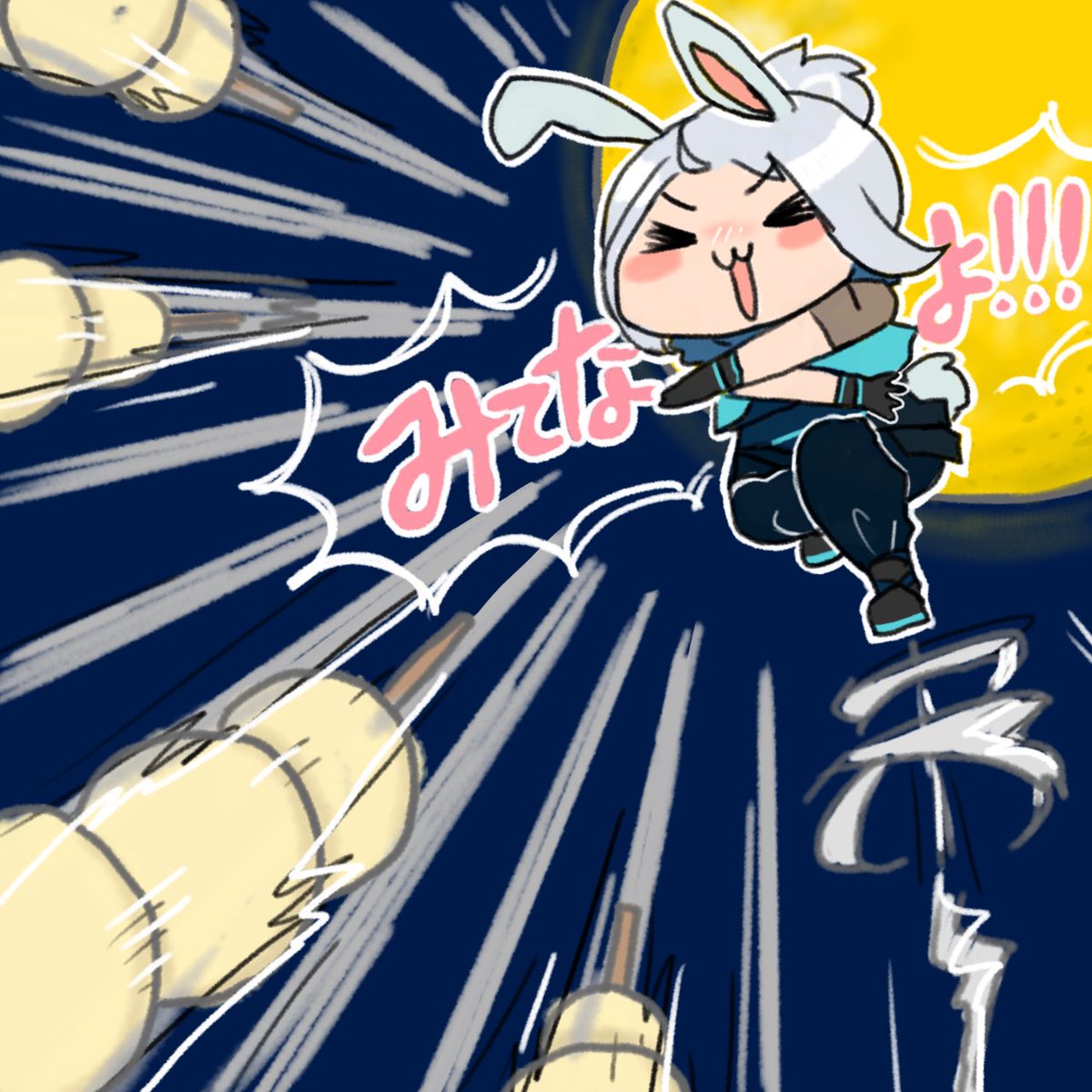 ウルトでおもちを投げるジェット🤣💓🌾🍡🌕🐰 岸さんの実況のときから『ウォッチディス!(watch this!)』が『ジャスティス!』にしか聞こえません(笑)🤣 #お月見イラスト #VALORANT #ValorantArt