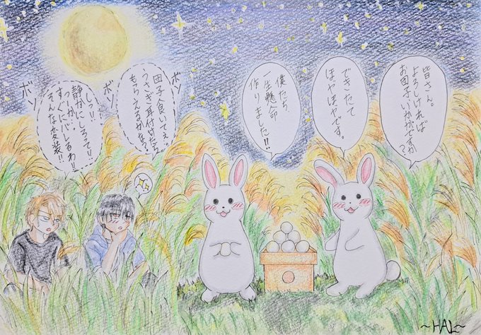 9月10日🌕️十五夜🎑 お月見イラスト台詞付きで描きました🐰 #十五夜イラスト #お月見団子 #イラスト #アナログイラスト #オリジナルイラスト #オリジナルキャラクター #秋の創作クラスターフォロー祭り