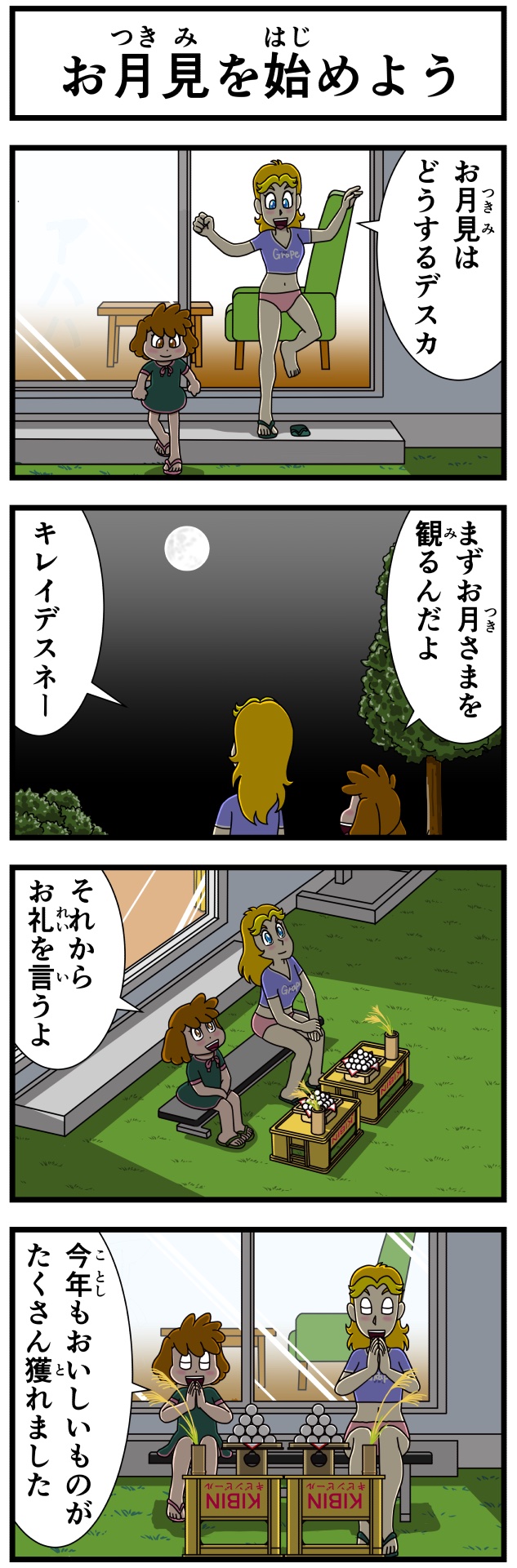 オリキャラみーちゃんとるーちゃんのお月見🌕 背景は花札がモチーフです🎴 頭のススキはウサギの真似かな?🐇🌾 みーちゃんはちょっとお団子食べ過ぎです😅 #創作イラスト #イラスト #オリジナルイラスト #絵描きさんと繋がりたい #お月見 #oc #digitalart #illustration #ART_RT #AdobeFresco #月