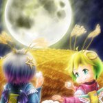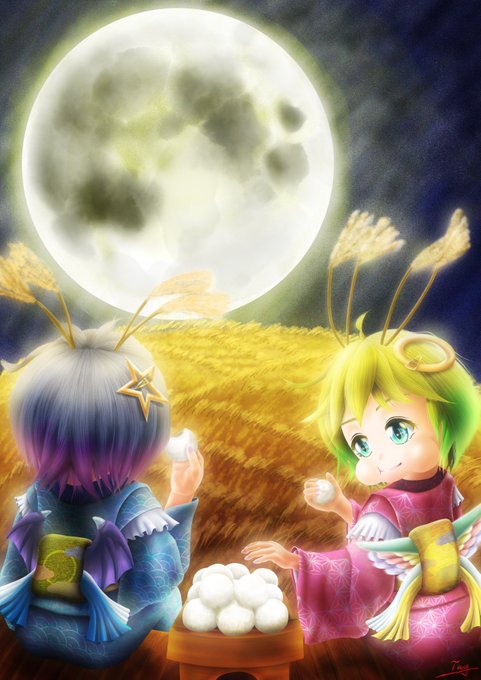 今夜は姉妹水入らずでお月見演奏会🎑 ポンポコ氷精さんもすすきの中から優しく見守ってます❄️🌾 #チルノ #九十九弁々 #九十九八橋 #深夜の真剣お絵描き60分一本勝負 (東方版・1658回目参加・お題フリー) (※1月27日お題) #九月十九日は九十九姉妹の日 #9月19日は九十九姉妹の日 #お月見