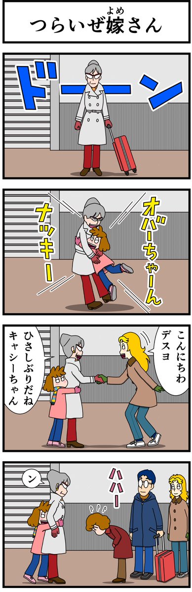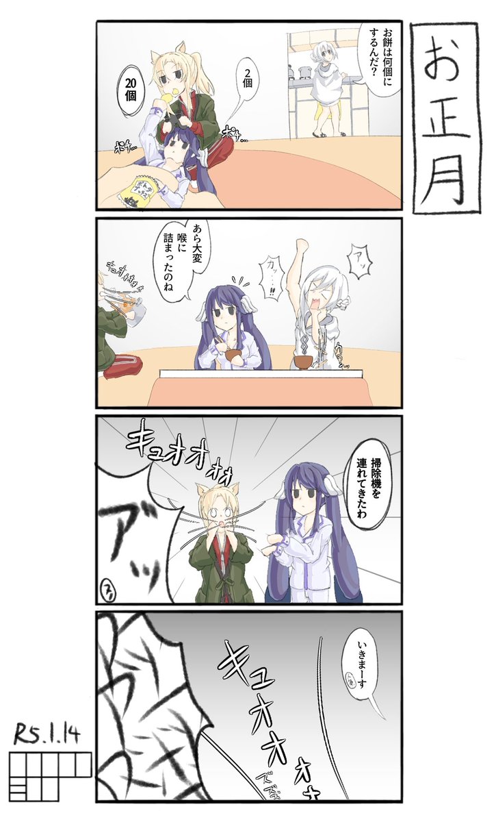 #キャシーとわたし 去年の1月のふたりをちょこっとリバイバル 4日目〜 #漫画 #漫画が読めるハッシュタグ #漫画がよめるハッシュタグ #創作漫画 #4コマ #4コマ漫画 #4コママンガ #過去絵を投げて絵を描いた気になろうキャンペーン #お正月 #manga #同居嫁