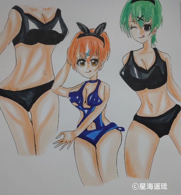 セクシーなイラストを描いて身体の構図を練習しました(*≧∀≦*) #お気に入りの縦長画像を見せよう #オリキャラは性癖の見本市 #私の絵柄が性癖に刺さる人に届いてほしい #イラスト練習中 #コピック