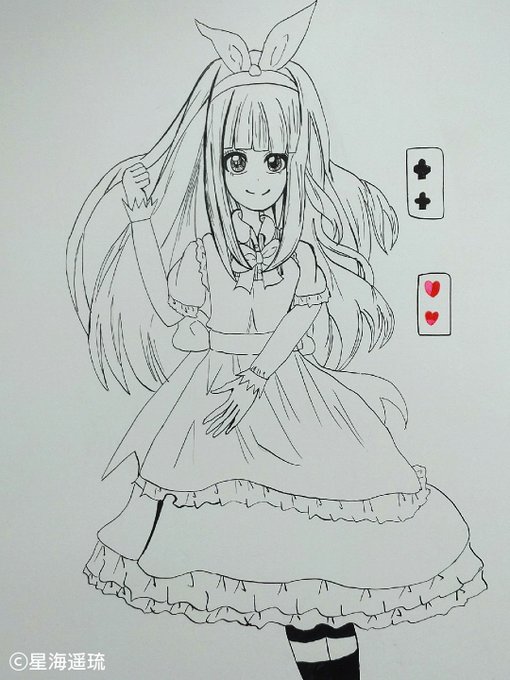 ♠️♣️不思議の国のアリスなうちの子♢♧ 黒髪のアリス衣装もなんか可愛いですね(*´﹀`*) #お気に入りの縦長画像を見せよう #不思議の国のアリス #創作 #アリス #Alice #コピック #オリキャラ愛の創作クラスタさんと繋がりたい #絵描きさんと繫がりたい #可愛いと思ったらRT