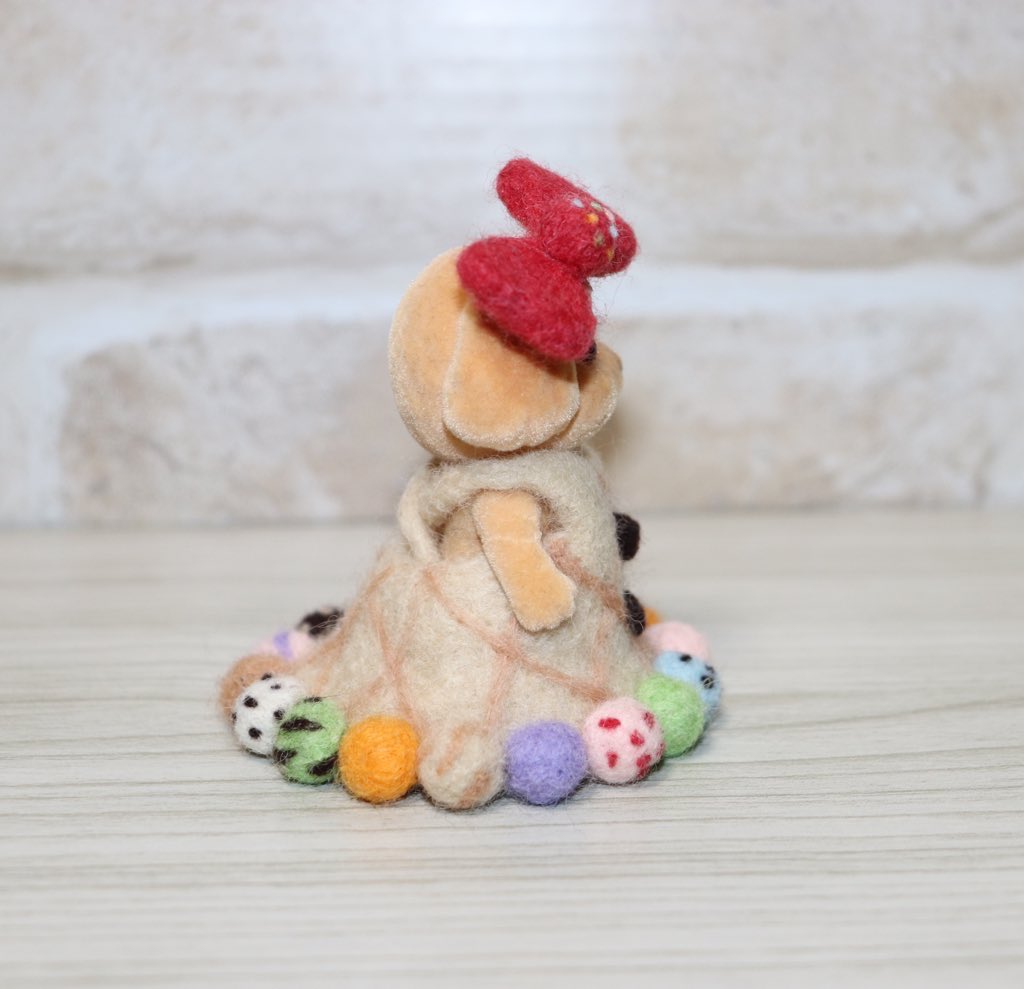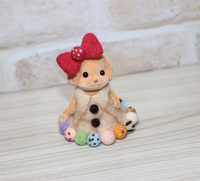 「おしゃれなアイスパーティードレス」 アイスとコーンをイメージ。 アイスは全て違う味にしました♪ シルバニアお洋服初挑戦! 羊毛フェルトの楽しさ素晴らしさも伝えられたら嬉しいです♪#シルバニアハンドメイドコンテスト #minne #トーカイ #お洋服部門 #シルバニアファミリー #羊毛フェルト