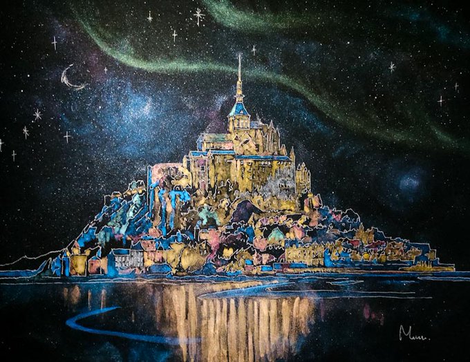 出来上がりました モンサンミッシェル✨ 2月の個展で展示します ・ ☆2/8〜2/14高槻阪急で個展開催 ☆公式LINE友だち募集 ☆無料絵画教室案内中 lin.ee/SeDzJeF 作品→muumuuart.com/415 夢追転身画家→muumuuart.com/profile-2 #イラスト #個展 #art #ペン画 #お洒落 #風景画