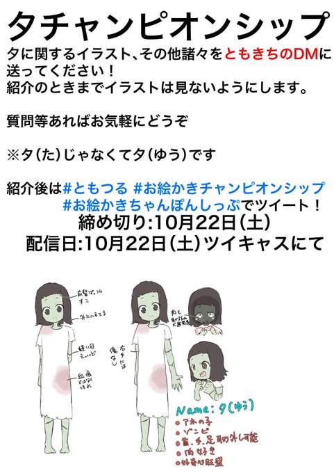 実に半年越し 次回ちゃんぽんしっぷのお知らせ!!!! 次回は夕(ゆう)です! 締切日に特に意味はないけどよろぴくぅ! #ともつる #お絵かきちゃんぽんしっぷ #お絵かきチャンピオンシップ #らまそい