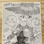 #ハロウィンイラスト #ハロウィン絵 #お絵かき交流会 描いている途中の絵です。40分制限で描いて、完成した絵はお渡しいたしました。この構図は初挑戦かな・・・いつも何かしらの課題を設定して描くと、やる気が湧きます。だけど今回は40分で描くのは無謀だったかもしれない💦