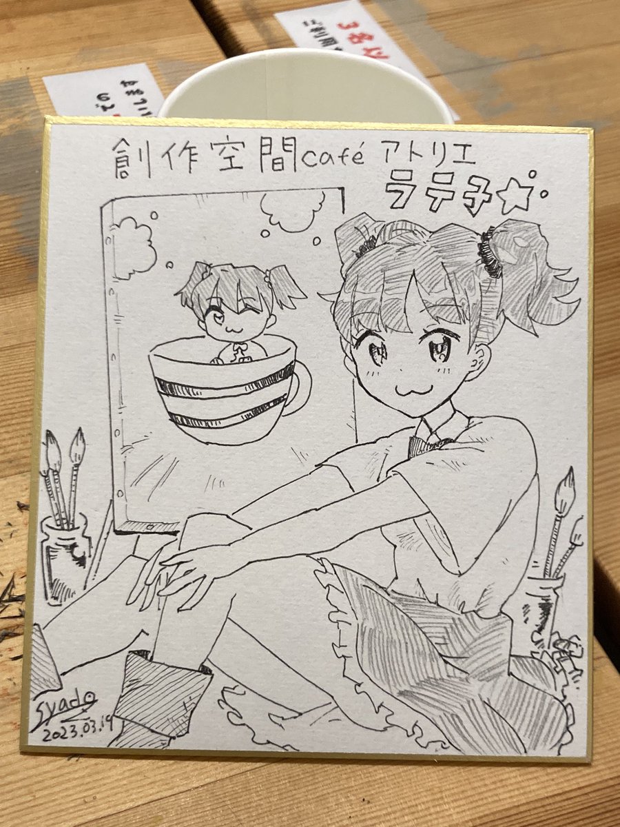 前回の東京に引き続き、今日は大阪のアトリエ本町店の交流会にも参加させて頂いてました♪ お題は「ラテ子ちゃん」ということで、東京で描いた色紙絵の繋がりでレトロポップなラテ子ちゃんにしました☺️ レトロポップが私の「推し」です👍 今回は名刺1枚も配れずでした~😂💦 #お絵かき交流会 twitter.com/conconmonaka/s…