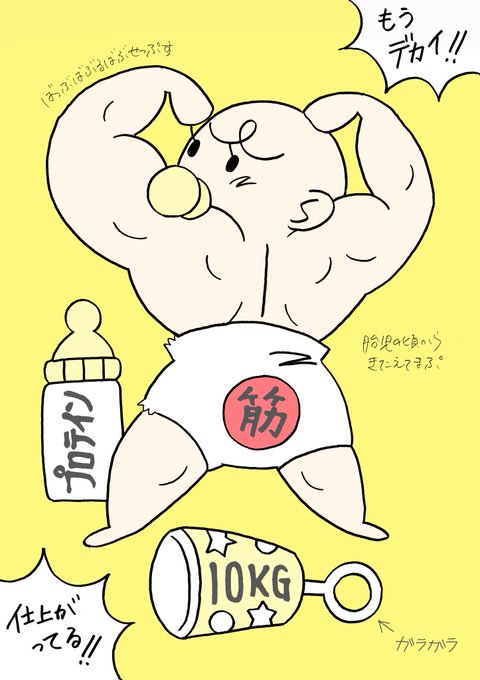#身描きあげられたGENSEKI #お絵描きと筋肉は裏切らない #漫画が読めるハッシュタグ #漫画家志望さんと繋がりたい #漫画好きな人と繋がりたい 動物達のマッチョな日常を描いた”ボディビルの可愛い仲間達”シリーズ【楽しい掛け声付き】 その④『胎児の頃から鍛えてまぷ ~ばっぶばぶるばぶせっぷす~』