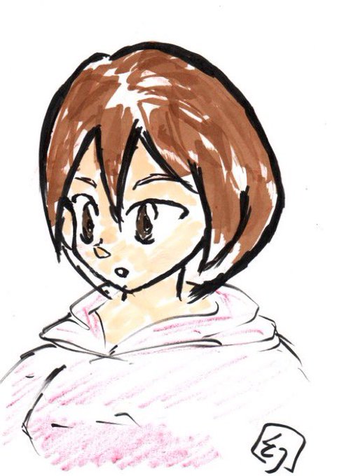 #お絵描きオフ会2023 オフ会イラスト mofさん(@mofmama ) 塗り方良いね。 ワンポイント緑が入るとアクセントになるかも、入れる所にセンスがいるから怖いけど(笑) mofさんはアナログ描くとき固くなってるね(笑)真面目さが出てる。 まあでも慣れてきてる印象