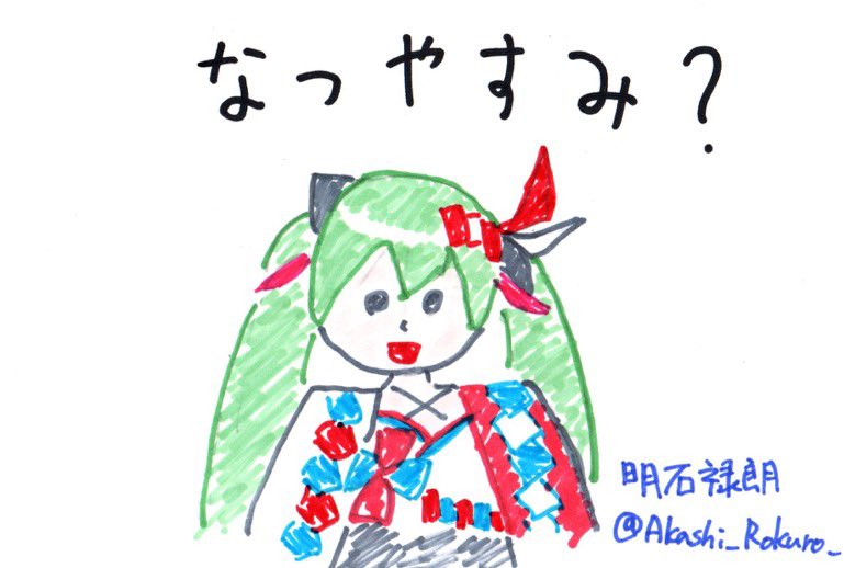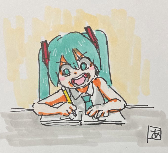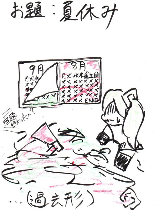 #お絵描きオフ会2023 お題「夏休み☀️」 ・放浪者幻矢さん(@StrengerGenya ) 夏休みの終わりはやはり宿題に追われる… 夏休みの風物詩(泣) ・mofさん(@mofmama ) ミクさん誕生日なのに、やはりこちらも宿題に追われる、夏休みの風物詩(泣)