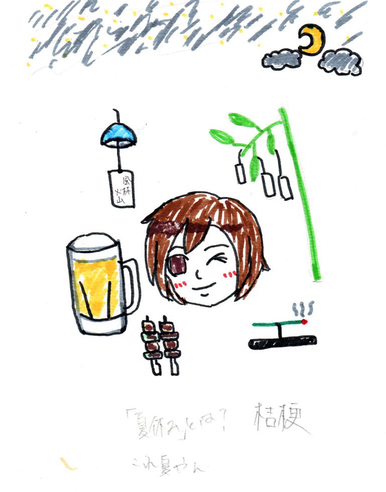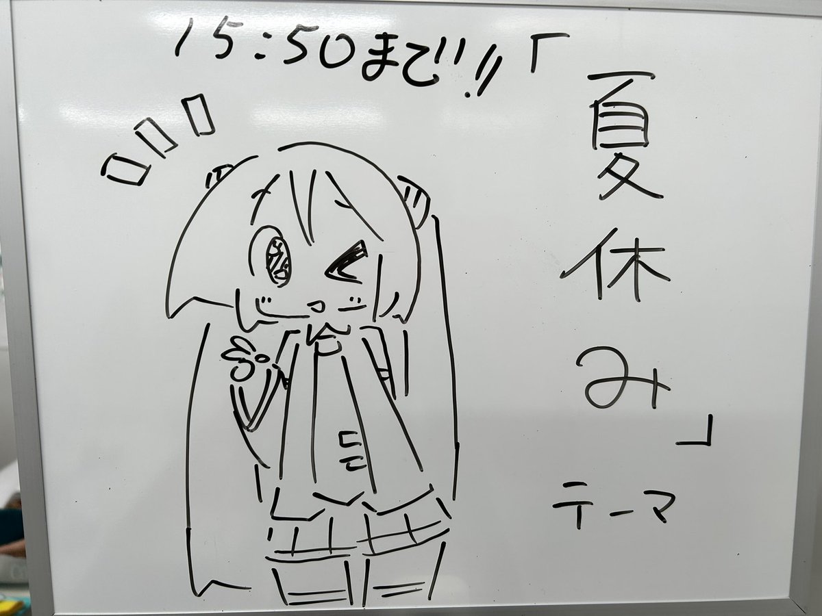 #お絵描きオフ会2023 @akusokuzan100sh さんに掲示いただいたお題「夏休み」のイラスト、紙じゃなくてiPadに描いちゃったからそのまま貼り出すという暴挙に出て絵師ドン引きでした🥰