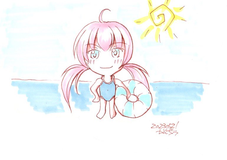 #お絵描きオフ会2023 お題「夏休み☀️」 ・ひろにゃさん(@mikimiku_meka ) 常夏のバリ島でバカンス楽しむハニーウィップちゃん…これはまさか…❤️ ・明石禄朗さん(@Akashi_Rokuro_ ) 夏祭りちゃんって、なつやすみがよく似合うよね!イメージぴったり☀️