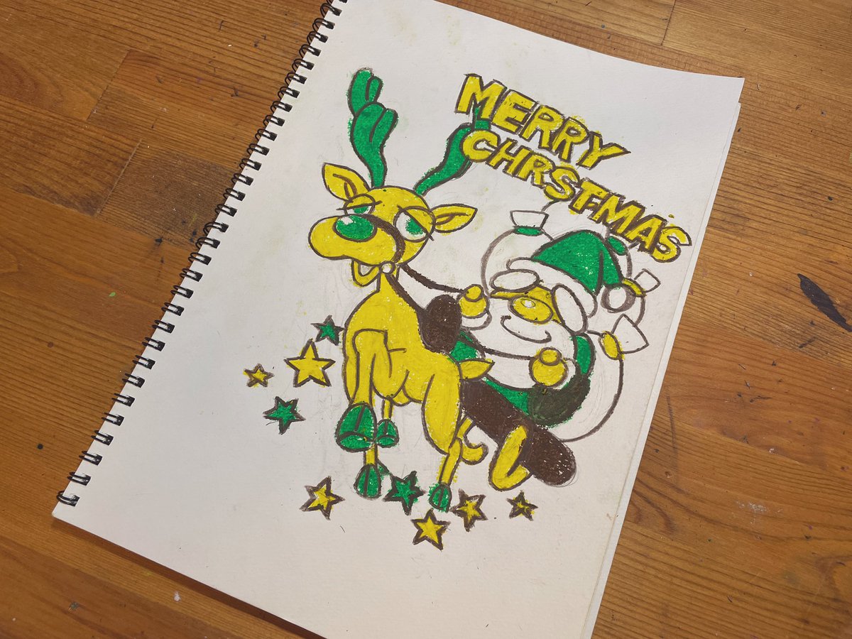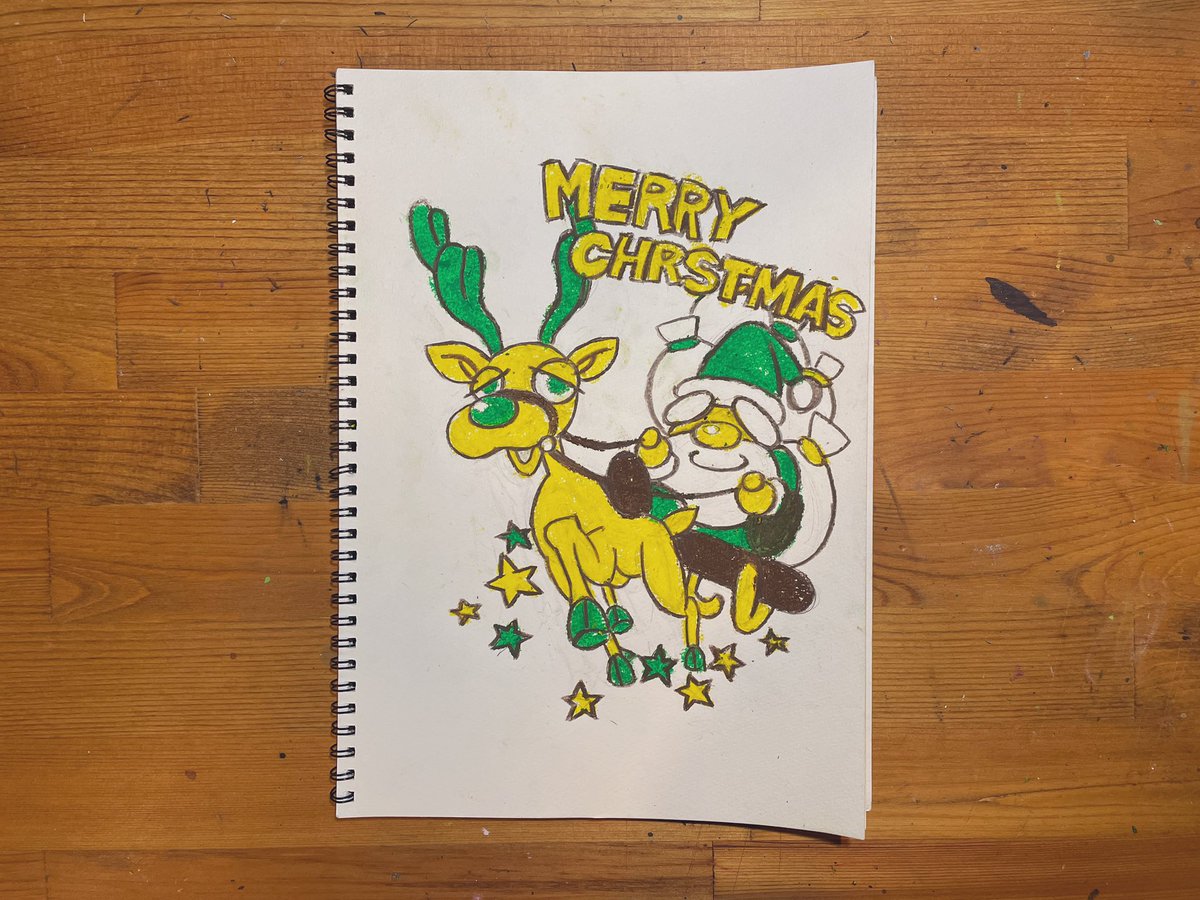 お絵描きぽけっとさんのオンライン絵画教室講師終了! 今回はクリスマスをテーマにクレヨン画を描かせて頂きました #お絵描き教室 #オンライン絵画教室 #絵画教室 #クリスマスイラスト #サンタクロース #トナカイ #クレヨン画