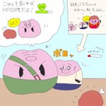 回復アイテムを見つけたぶたちゃん🐽 普通は体力がない相方にゆずるものだけど… こういうときだけ、素早いんだから‼️ #illustration #絵描きさんと繫がりたい #イラスト好きな人と繋がりたい #回復 #お肉 #ばかぶたちゃん