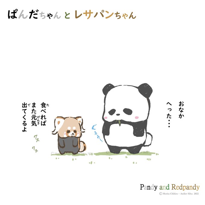 . 🐾ぱんだちゃん と レサパンちゃん🐾Pandy and redpandy🐾 ~ おなか ~ . . . #ぱんだちゃんとレサパンちゃん #パンダ #レッサーパンダ #お腹減った #イラスト #panda #redpanda #illustration