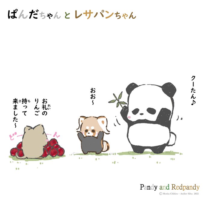 . 🐾ぱんだちゃん と レサパンちゃん🐾Pandy and redpandy🐾 ~ クーたん♪ ~ . . . #ぱんだちゃんとレサパンちゃん #パンダ #レッサーパンダ #お腹減った #イラスト #panda #redpanda #illustration
