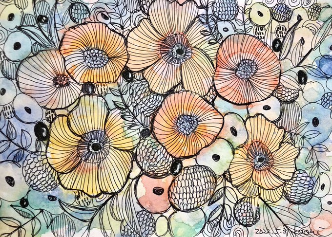 皆さん おはようございます😃 あんまり眠れなくてお絵描きしてました(新月のせいかな?) 5月もラストですネ! 今日もよろしくお願いします🤲少しでも楽しく生きたいと思います♪ やっぱり筆が大事なんやね〜どれでもか〜100均の筆やから毛が抜ける💦 #よろずお絵描きの会 #水彩画 #お花ですネン