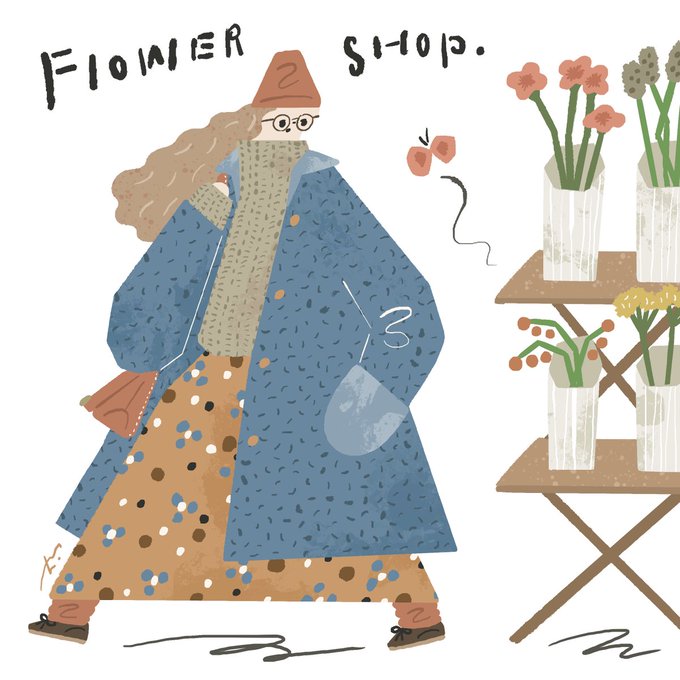 お花屋さんシリーズ 新絵柄を試してみました。 (そんなに変わってない?) #お花屋さん #オリジナルイラスト #絵描きさんと繋がりたい #イラスト好きな人と繋がりたい #絵柄が好みって人にフォローされたい