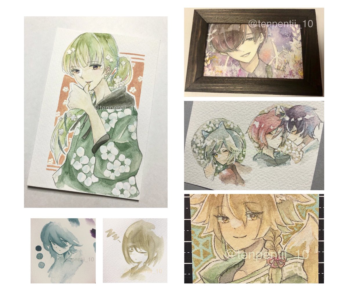 #今月描いた絵を晒そう #透明水彩 お気に入りの絵が増えた月でした🎨 新しく好みの色も2つ練れたのでよかった※左下 (#アニマルパレード展、 #お花屋さんがある日々展 に出したくてそれぞれ絵を準備中です…!)