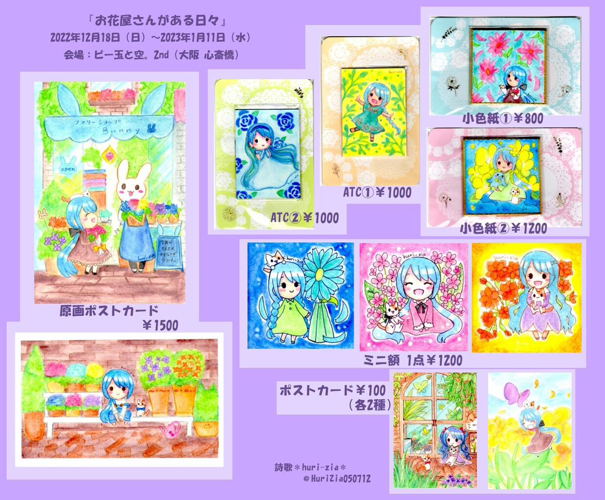 #お花屋さんがある日々展 の豆色紙です💐 展示期間中に年越しするのでお正月イラストを描いてみました✨ ラッピングの裏面にはおみくじが付いています🎍✨ ラッピング頑張りました💪🏻 実物はキラキラ華やかな感じですので是非ご覧下さい💕