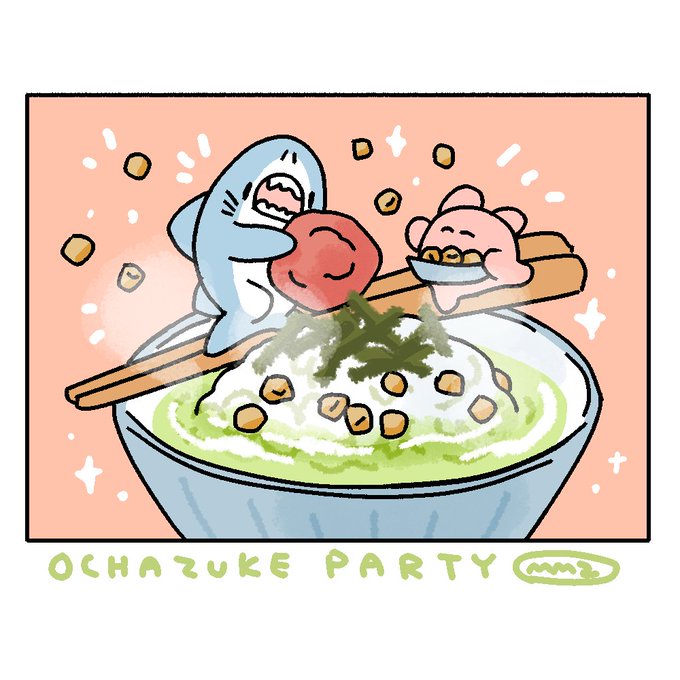 おはようございます!! #お茶漬けの日 一人で食べるなんて許せない!! 今日も素敵な水曜日を〜🤗 #絵描きさんと繋がりたい #みんなで楽しむTwitter展覧会 #イラスト #油性ペン #マッキー画