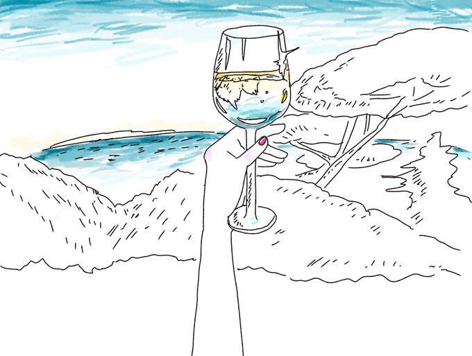 瀬戸内の海と空をグラスにそそいだから 心が世界の隅々までひろがった。 お酒を描くのが嫌いになるかもしれない日まで あと91日 #ベネッセミュージアム 白ワインと瀬戸内レモンソーダを勝手に割って作ったお酒。 #お酒を100杯分描いたイラストレーターになる日まで #ビール #酒 #イラスト