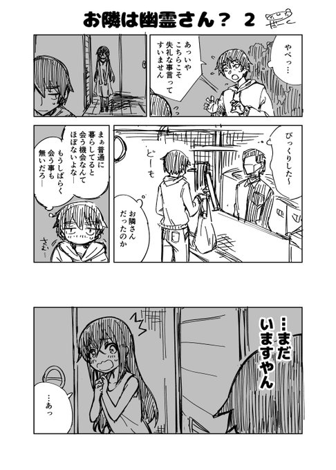 オリジナル漫画オリジナル漫画 お隣は幽霊さん? 2-1 (1/2) #お隣は幽霊さん #漫画が読めるハッシュタグ 1話はそのままのナンバリングでしたが、今回から話単位のナンバリングにしていきます(2-1とか3-1とか)