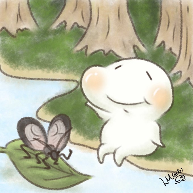 22/8/26 少しずつ涼しくなってきたねぇ♪ あれれっ? 耳をすますとスズムシさんが泣いてるよっ🦗 秋の足音が聞こえるね👂🏻✨ #おもちの日々 #秋の虫 #スズムシ #お餅好きと繋がりたい #ゆるいイラスト #ゆるキャラ #癒し #イラスト #ゆるい #みんなで楽しむTwitter展覧会 #絵本作家 #NFTartist