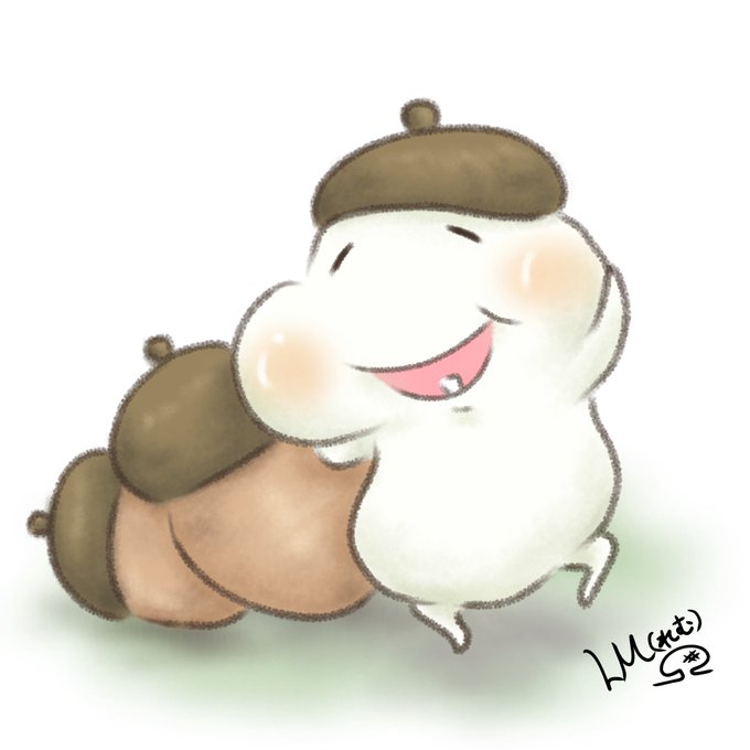 22/9/3 見てぇ〜っ❤️ 森の中で 新しいお帽子見つけたのっ👒💕 秋はこれたくさんかぶるの〜っ🍂✨✨ #おもちの日々 #どんぐりぼうし #秋のあしおと #どんぐりころころ #お餅好きと繋がりたい #ゆるいイラスト #ゆるキャラ #癒し #イラスト #みんなで楽しむTwitter展覧会 #絵本作家 #NFTartist