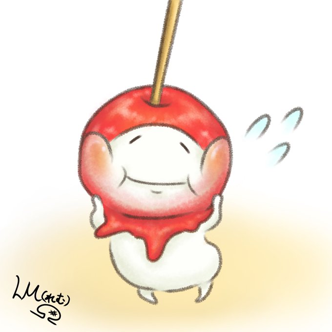 22/9/4 あれぇ〜っ😵💫 おもち、リンゴあめになっちゃったのっ🍎🍭 みんな、お迎えしてくれるのっ?💦 #おもちの日々 #リンゴ飴 #お餅好きと繋がりたい #お餅 #ゆるいイラスト #ゆるキャラ #癒し #イラスト #みんなで楽しむTwitter展覧会 #絵本作家 #NFTartist
