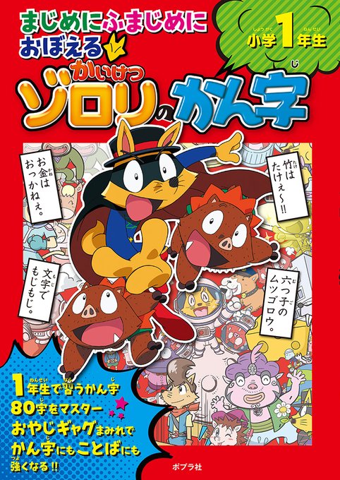 【お仕事告知】 まじめにふまじめにおぼえるかいけつゾロリのかん字 小学1年生 poplar.co.jp/book/search/re… 2年生 poplar.co.jp/book/search/re… ゾロリのオヤジギャグ漢字ドリル🦊 中のカットとカラー漫画を描きました(表紙はアニメ絵です) 12年ぶりの #かいけつゾロリ のお仕事!よろしくお願いします🙏