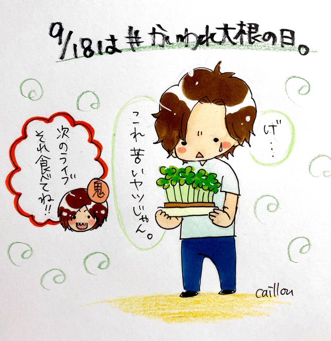 本日『#かいわれ大根の日』でした☘️ 台風14号が 鹿児島市付近 上陸との事🌀 台風の影響も心配ですが、 台湾の地震 の被害も心配ですね…💦 一人でも多くの無事をお祈りします🙏 本日も皆様、お疲れ様でした。 #イラスト好きな人と繋がりたい #秋の創作クラスタフォロー祭り #イラスト #1日1絵