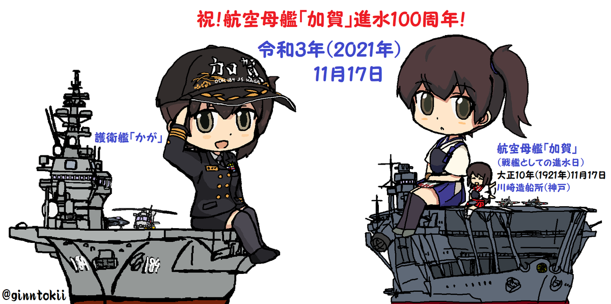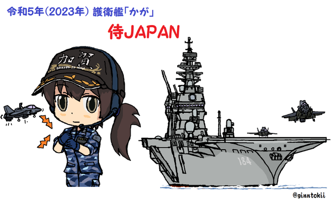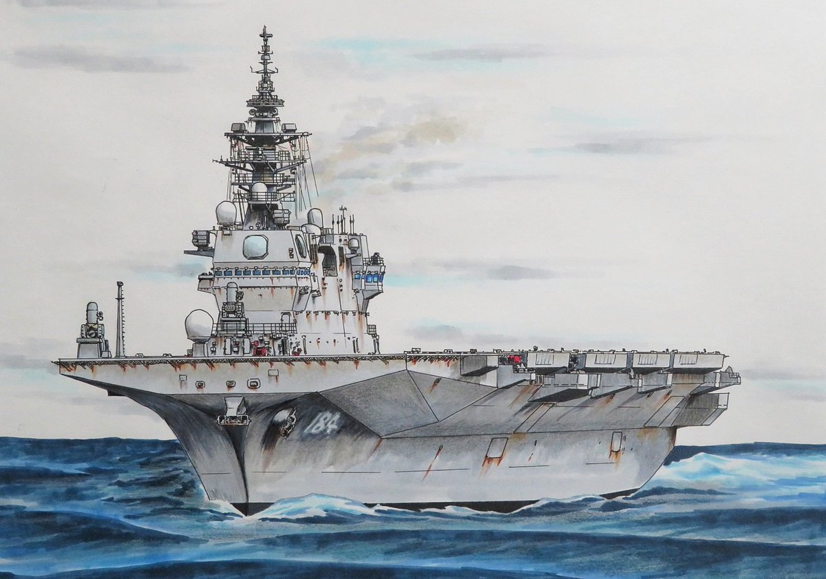 #ゴールデンウィークSNS展覧会2022 呉に入渠中の #海上自衛隊 護衛艦「#かが」途中… 新鋭護衛艦「#くまの」 米空母「#カール・ヴィンソン」 英空母「#クイーン・エリザベス」 艦と艦これやオリジナルのキャラ等描いてます✨