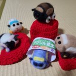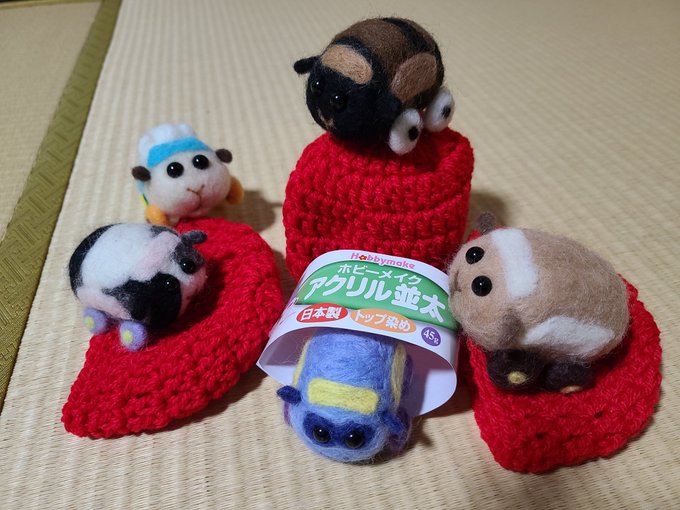 昨日買った赤の毛糸🧶はすぐに編みきりました😌 3枚の小さなニット帽? 実はお地蔵様の帽子です☺️かなり汚れていてずーっと気になり、編みたかったのです。 何も知らないぷいちゃん達😅 既に交換済です😊(どこのお地蔵様かは身バレしたくない為内緒🤫) #編み物 #かぎ編み #モルカーファンアート twitter.com/aka_lamelu/s…