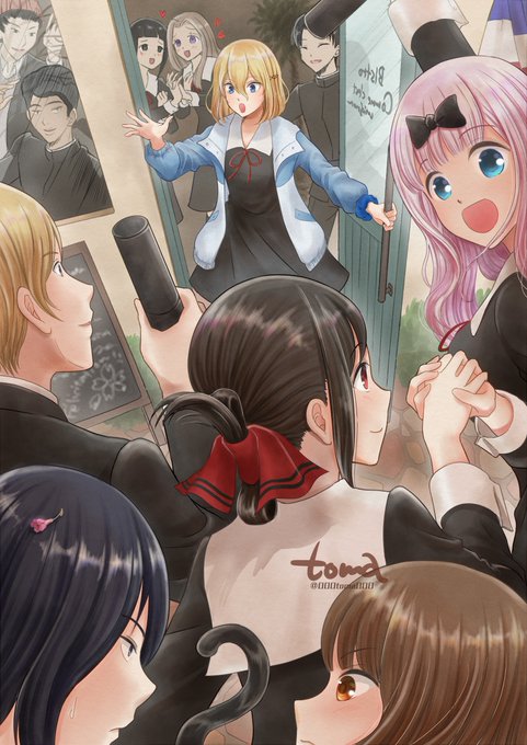 かぐや様連載完結おめでとうございます🎉🎊 じたじたしちゃう恋愛頭脳戦も一生懸命一途なキャラたちもずっと大好きです😭😭😭 白かぐを発明してくださって本当にありがとう✨ 駅前の良い店で皆と盛大にやってくれ絵 #かぐや様 #かぐや様をありがとう #かぐや様完結