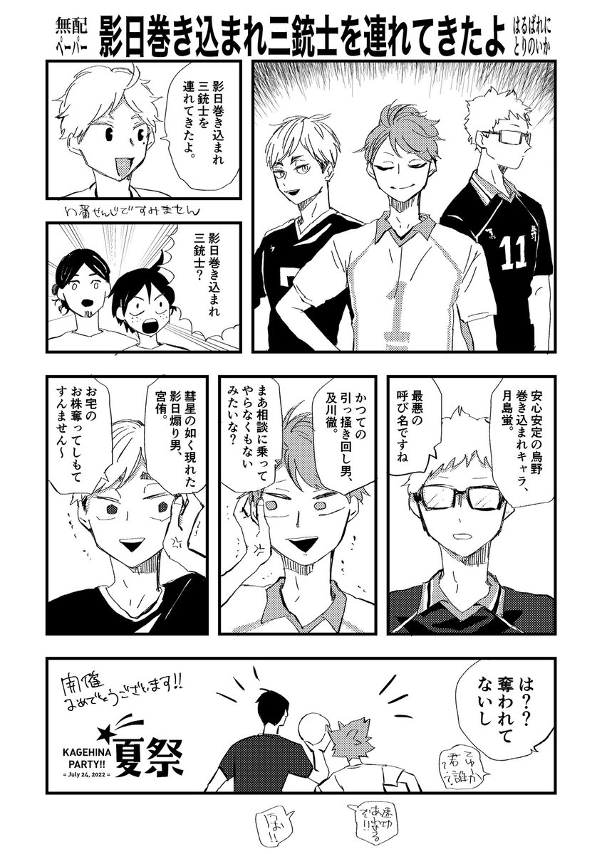 【ラリー対象ペーパー配布条件】 新刊一部につき一枚お付けします ※既刊に付けたりペーパーのみでも可ですが お1人につき1枚まででお願いいたします #かげひなパーティ夏祭 新刊サンプル 【7/24新刊】『空を泳ぐ魚③』【影日】 | ぶぶん飯店(一樹らい) #pixiv pixiv.net/artworks/99770…